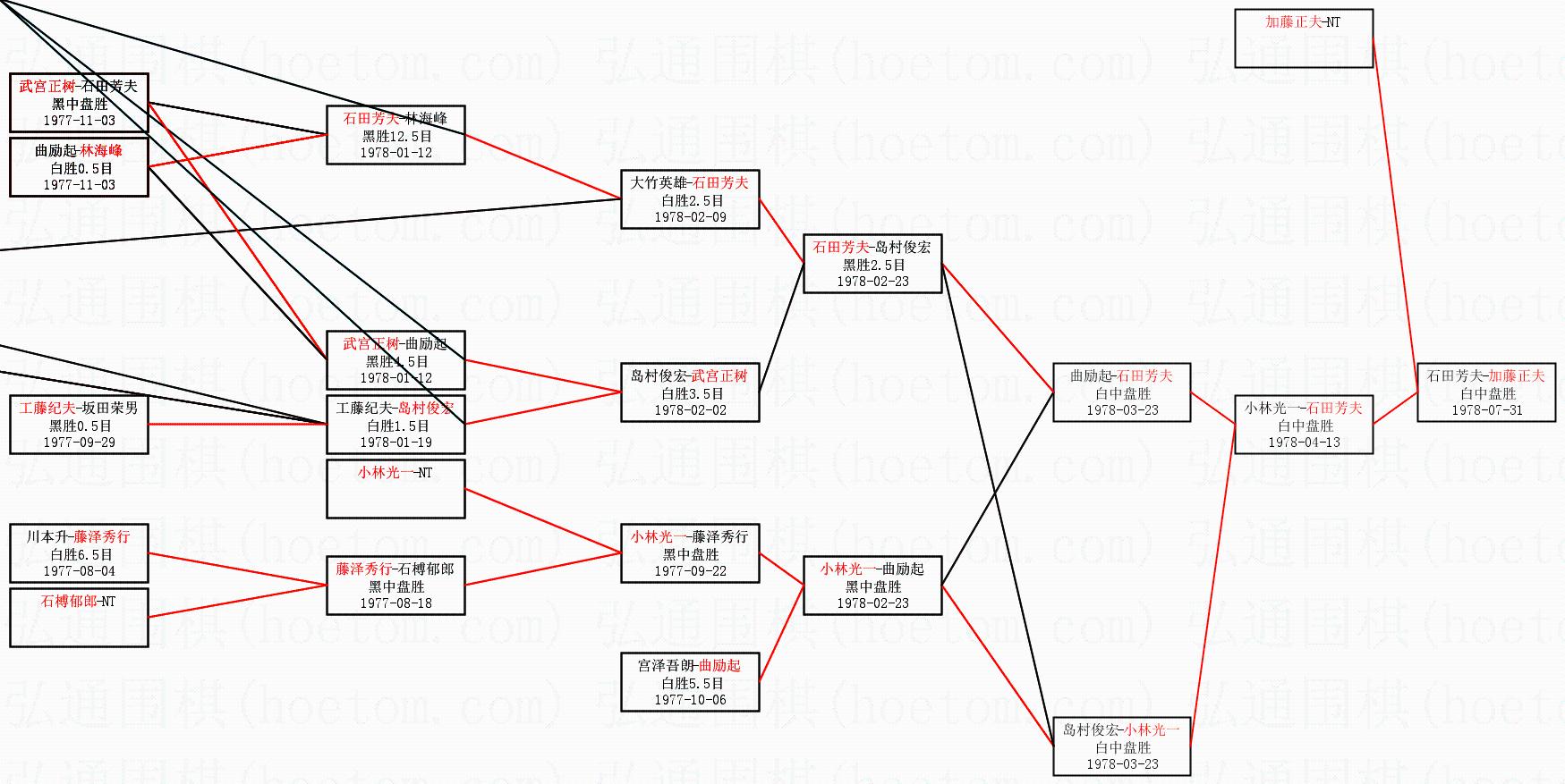 3.下半区半决赛石田芳夫获胜,比分:石田芳夫1:0小林光一。棋局: