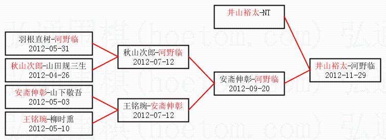 1.井山裕太获得冠军,河野临获得亚军。决赛比分:井山裕太3:0河野临。棋局:
