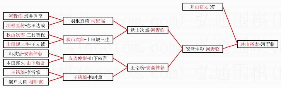 1.井山裕太获得冠军,河野临获得亚军。决赛比分:井山裕太3:0河野临。棋局: