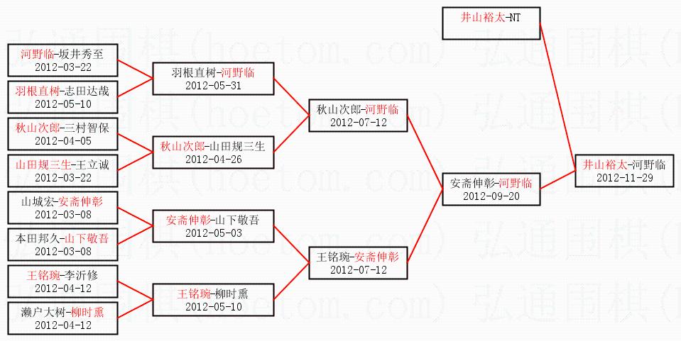1.井山裕太获得冠军,河野临获得亚军。决赛比分:井山裕太3:0河野临。棋局: