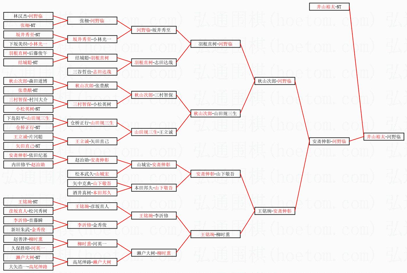 1.井山裕太获得冠军,河野临获得亚军。决赛比分:井山裕太3:0河野临。棋局: