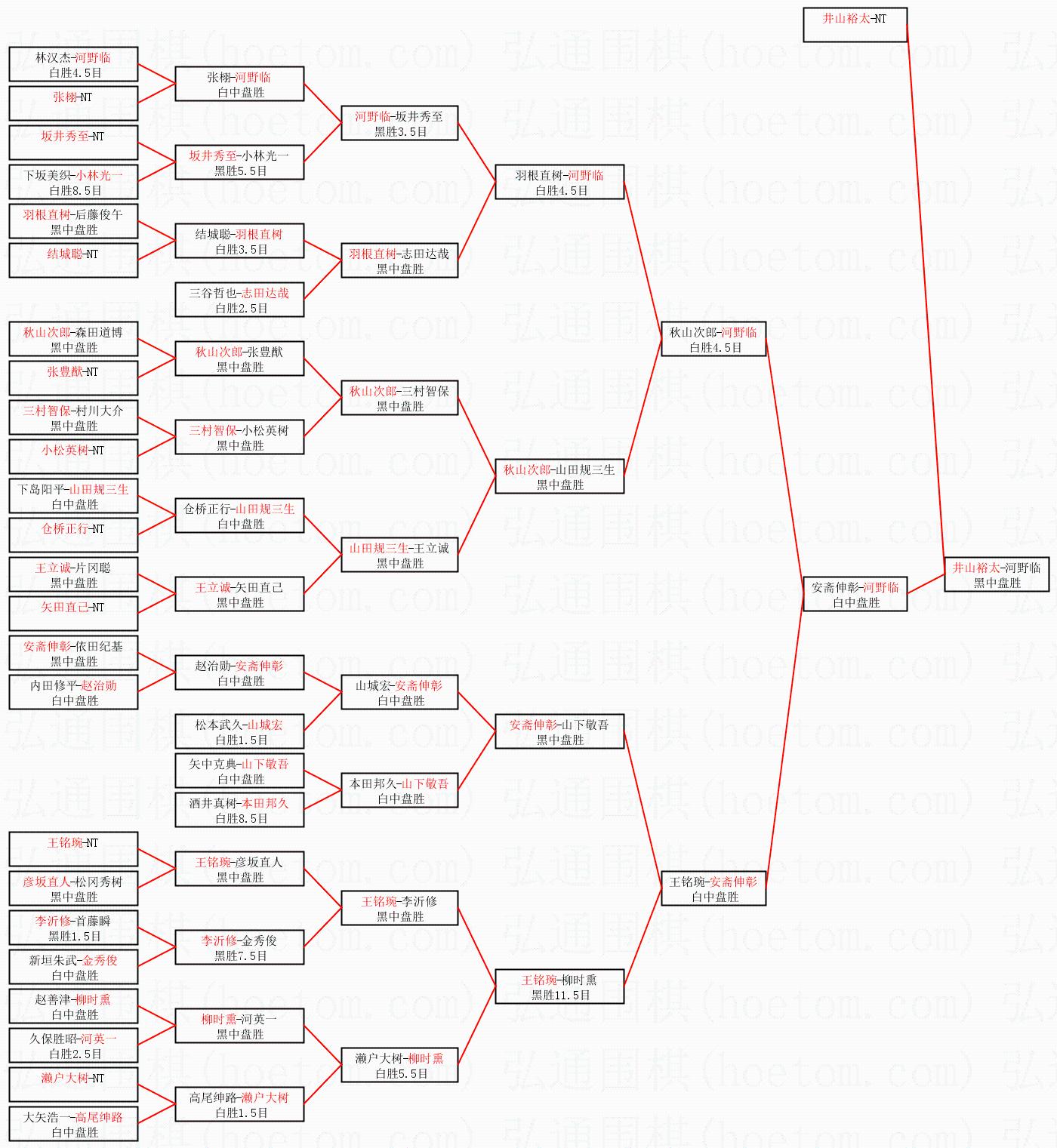 1.井山裕太获得冠军,河野临获得亚军。决赛比分:井山裕太3:0河野临。棋局: