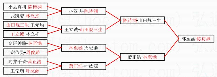2.上半区半决赛陈诗渊获胜, 比分:陈诗渊 1:0 山田规三生。棋局: