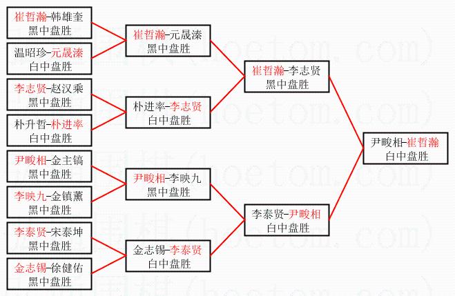 3.下半区半决赛尹畯相获胜,比分:尹畯相1:0李泰贤。棋局: