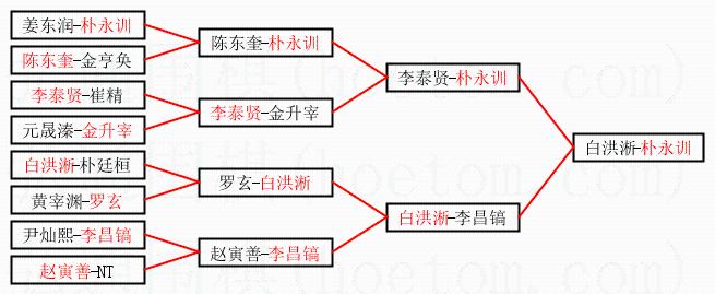| 1.朴永训获得冠军,白洪淅获得亚军。决赛比分:朴永训3:1白洪淅。棋局: | ||
