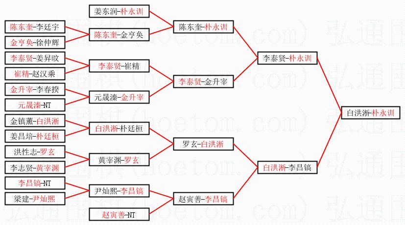 | 1.朴永训获得冠军,白洪淅获得亚军。决赛比分:朴永训3:1白洪淅。棋局: | ||