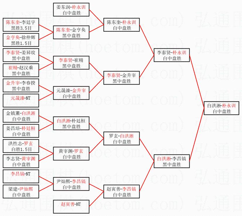 | 1.朴永训获得冠军,白洪淅获得亚军。决赛比分:朴永训3:1白洪淅。棋局: | ||