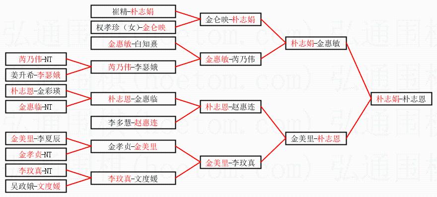 | 1.朴志娟获得冠军,朴志恩获得亚军。决赛比分:朴志娟2:1朴志恩。棋局: | ||