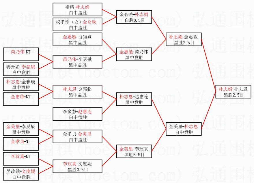 | 1.朴志娟获得冠军,朴志恩获得亚军。决赛比分:朴志娟2:1朴志恩。棋局: | ||