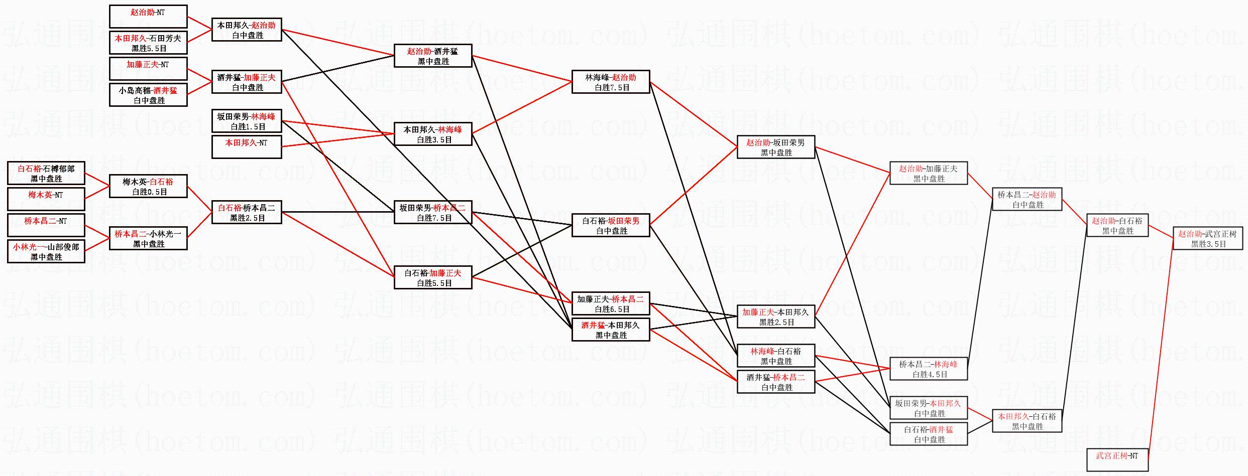 | 2.上半区半决赛赵治勋获胜, 比分:赵治勋 1:0 白石裕。棋局: | ||