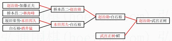 | 1.赵治勋获得冠军,武宫正树获得亚军。决赛比分:赵治勋4:2武宫正树。棋局: | ||