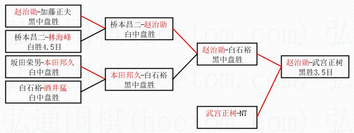 | 1.赵治勋获得冠军,武宫正树获得亚军。决赛比分:赵治勋4:2武宫正树。棋局: | ||