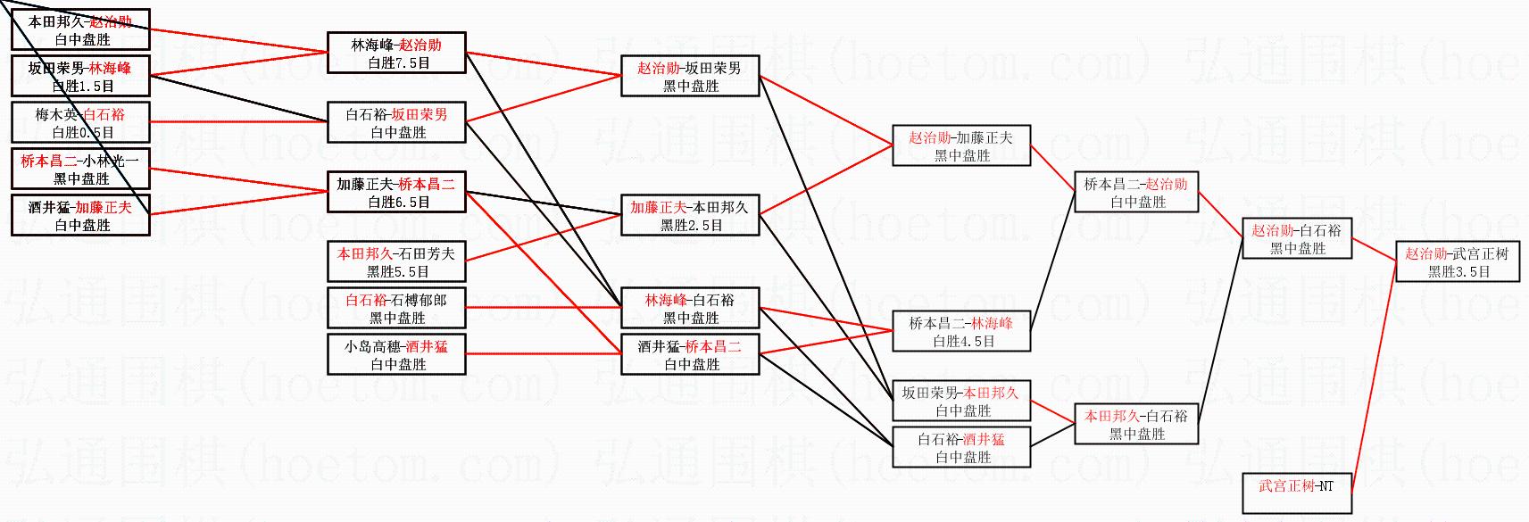 | 1.赵治勋获得冠军,武宫正树获得亚军。决赛比分:赵治勋4:2武宫正树。棋局: | ||