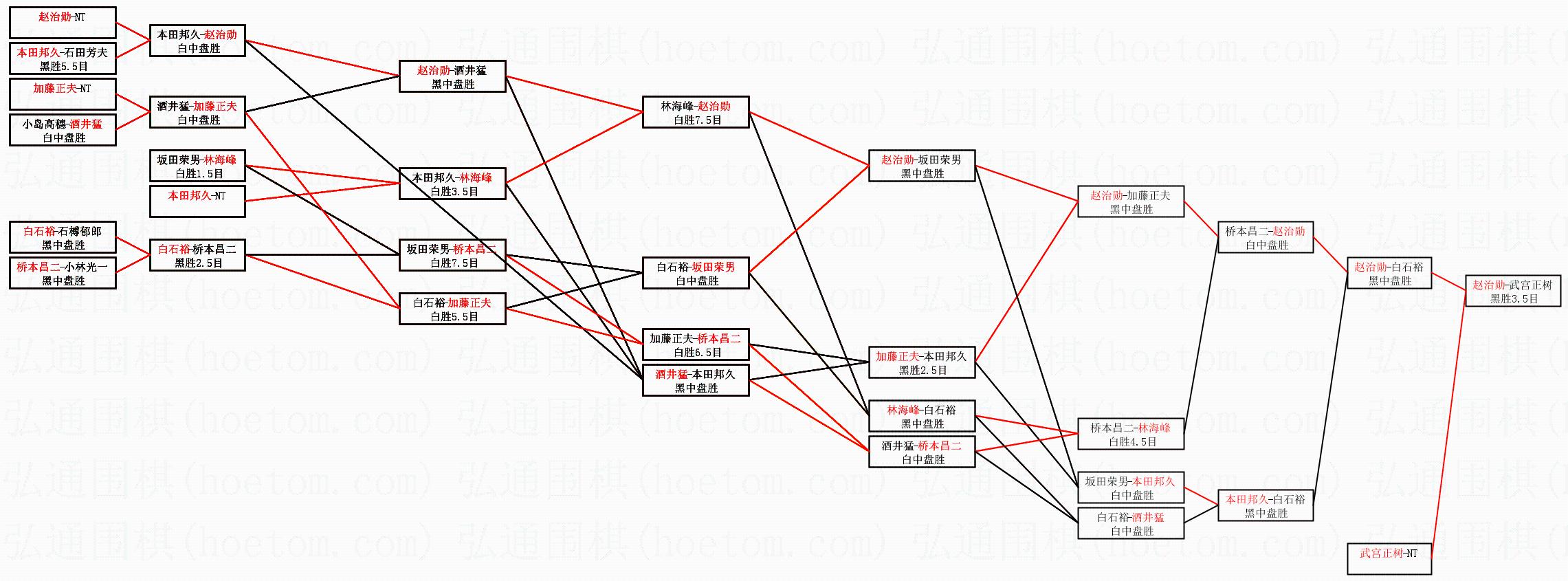 | 1.赵治勋获得冠军,武宫正树获得亚军。决赛比分:赵治勋4:2武宫正树。棋局: | ||