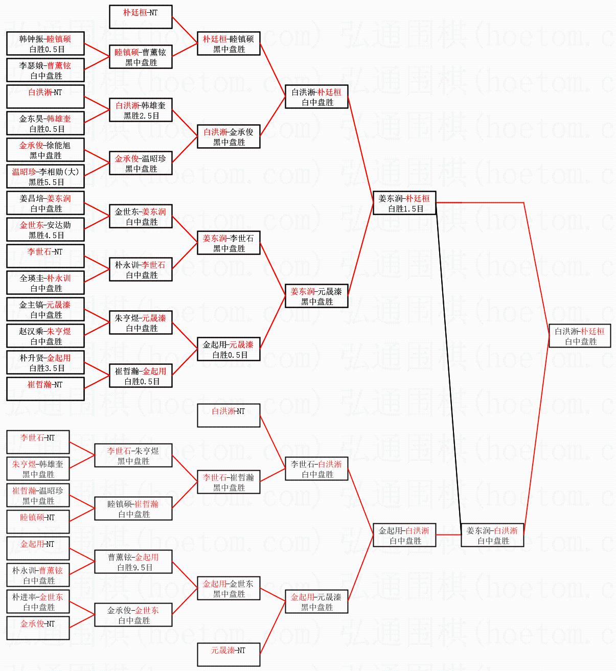 1.朴廷桓获得冠军,白洪淅获得亚军。决赛比分:朴廷桓2:0白洪淅。棋局: