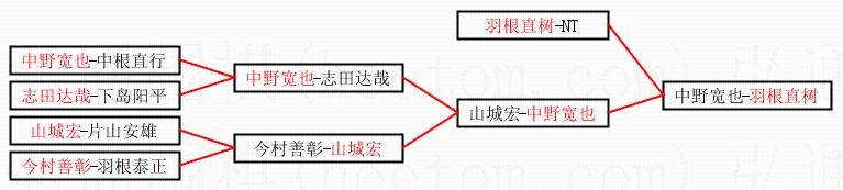 1.羽根直树获得冠军,中野宽也获得亚军。决赛比分:羽根直树1:0中野宽也。棋局: