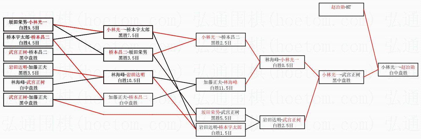 1.赵治勋获得冠军,小林光一获得亚军。决赛比分:赵治勋4:2小林光一。棋局: