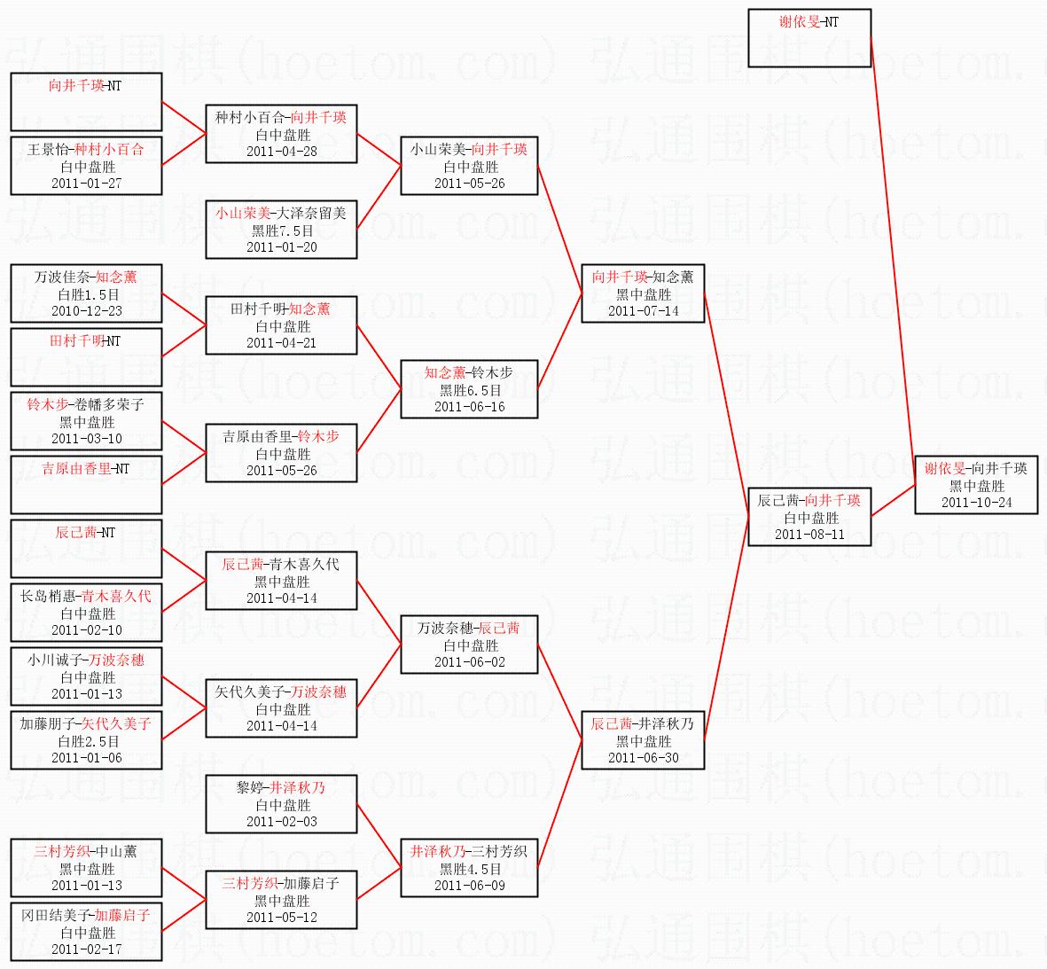 | 2011-10-17 向井千瑛-谢依旻 白胜8.5目 | ||