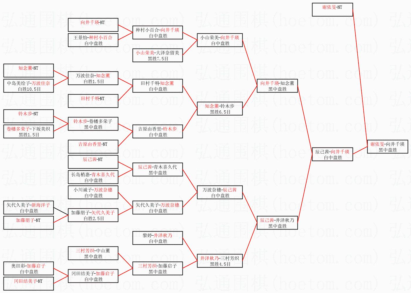 | 1.谢依旻获得冠军,向井千瑛获得亚军。决赛比分:谢依旻3:1向井千瑛。棋局: | ||