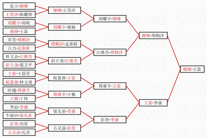 3.下半区半决赛王雷获胜,比分:王雷1:0李康。棋局: