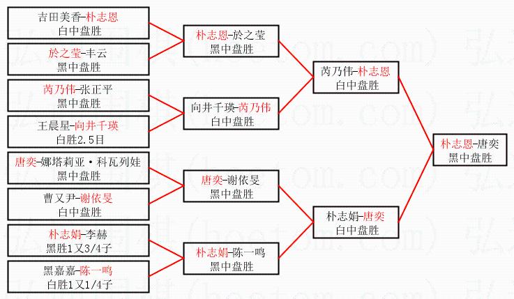 2.上半区半决赛朴志恩获胜, 比分:朴志恩 1:0 芮乃伟。棋局: