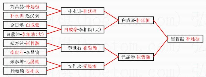 | 1.朴廷桓获得冠军,崔哲瀚获得亚军。决赛比分:朴廷桓2:0崔哲瀚。棋局: | ||