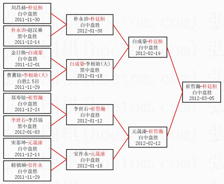 | 1.朴廷桓获得冠军,崔哲瀚获得亚军。决赛比分:朴廷桓2:0崔哲瀚。棋局: | ||