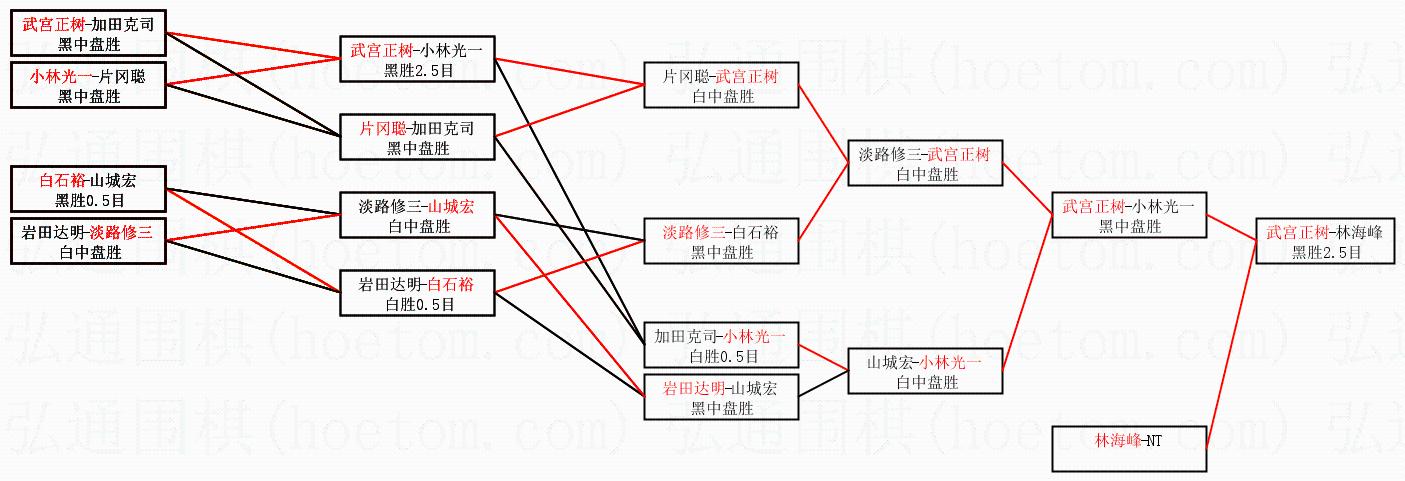 1.武宫正树获得冠军,林海峰获得亚军。决赛比分:武宫正树4:1林海峰。棋局: