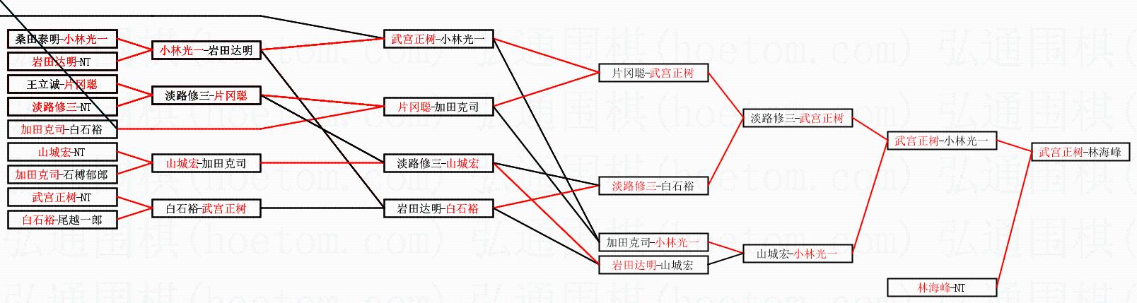 | 1.武宫正树获得冠军,林海峰获得亚军。决赛比分:武宫正树4:1林海峰。棋局: | ||