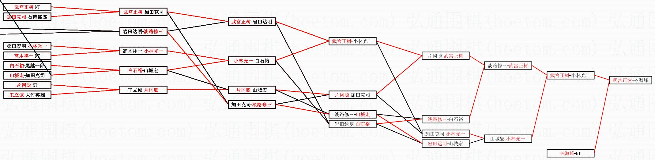 1.武宫正树获得冠军,林海峰获得亚军。决赛比分:武宫正树4:1林海峰。棋局: