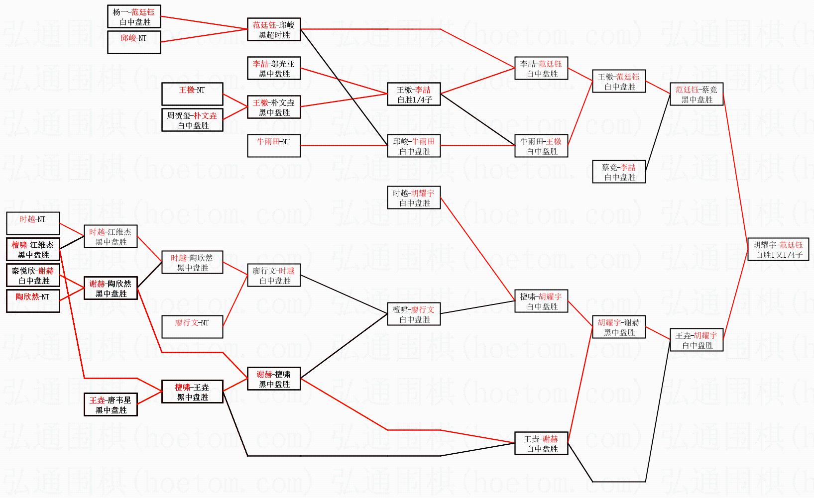 2.上半区半决赛范廷钰获胜, 比分:范廷钰 1:0 蔡竞。棋局: