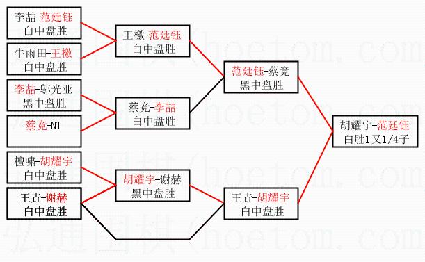 2.上半区半决赛范廷钰获胜, 比分:范廷钰 1:0 蔡竞。棋局: