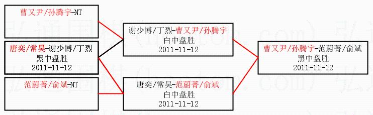 | 2011-11-12 曹又尹/孙腾宇-范蔚菁/俞斌 黑中盘胜 | ||
