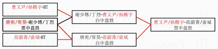 | 2.上半区半决赛曹又尹/孙腾宇获胜, 比分:曹又尹/孙腾宇 1:0 谢少博/丁烈。棋局: | ||