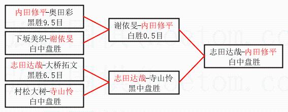 2.上半区半决赛内田修平获胜, 比分:内田修平 1:0 谢依旻。棋局: