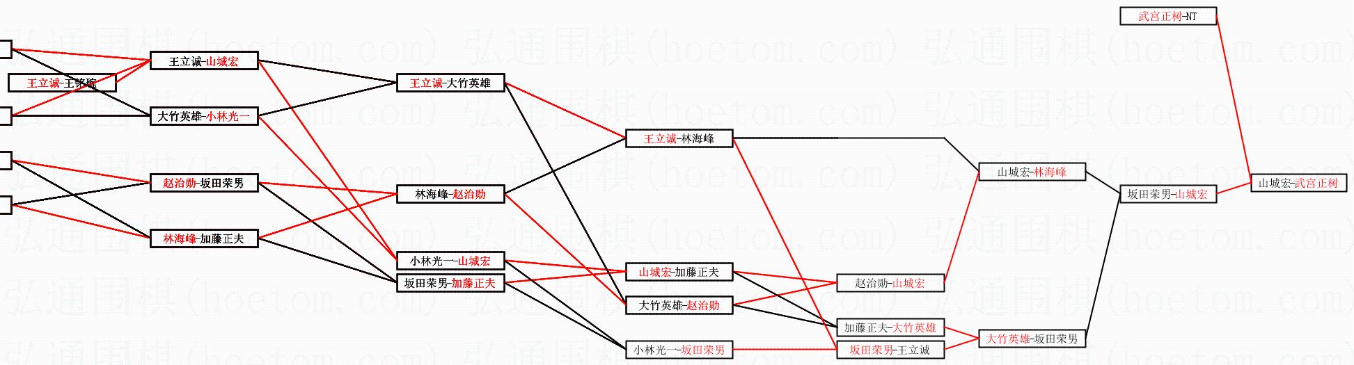 1.武宫正树获得冠军,山城宏获得亚军。决赛比分:武宫正树4:0山城宏。棋局: