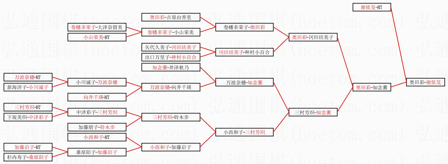 1.谢依旻获得冠军,奥田彩获得亚军。决赛比分:谢依旻3:0奥田彩。棋局: