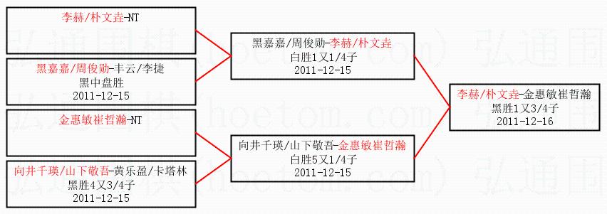 | 2011-12-16 李赫/朴文垚-金惠敏崔哲瀚 黑胜1又3/4子 | ||