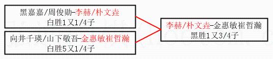 | 2011-12-16 李赫/朴文垚-金惠敏崔哲瀚 黑胜1又3/4子 | ||