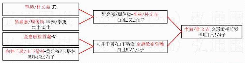 3.下半区半决赛金惠敏崔哲瀚获胜,比分:金惠敏崔哲瀚1:0向井千瑛/山下敬吾。棋局: