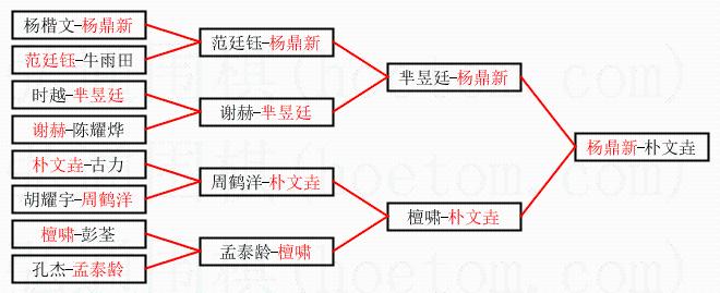 1.杨鼎新获得冠军,朴文垚获得亚军。决赛比分:杨鼎新1:0朴文垚。棋局: