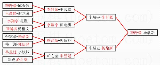 1.李轩豪获得冠军,杨鼎新获得亚军。决赛比分:李轩豪1:0杨鼎新。棋局: