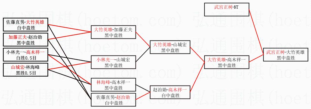 1.武宫正树获得冠军,大竹英雄获得亚军。决赛比分:武宫正树4:3大竹英雄。棋局: