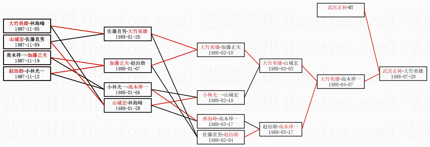 1.武宫正树获得冠军,大竹英雄获得亚军。决赛比分:武宫正树4:3大竹英雄。棋局: