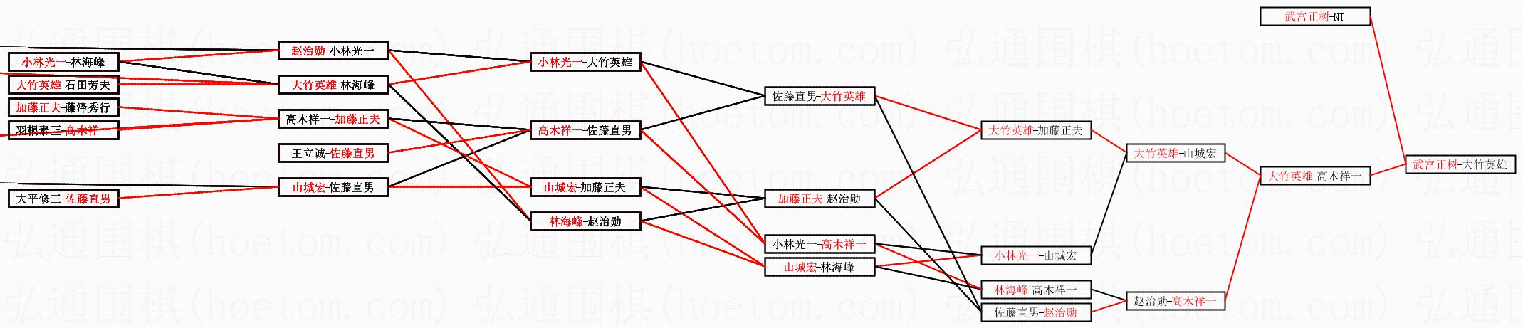 1.武宫正树获得冠军,大竹英雄获得亚军。决赛比分:武宫正树4:3大竹英雄。棋局: