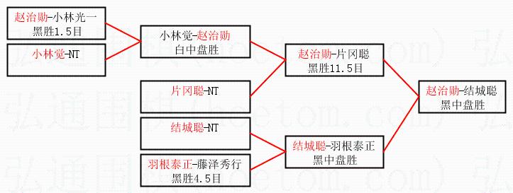 1.赵治勋获得冠军,结城聪获得亚军。决赛比分:赵治勋1:0结城聪。棋局: