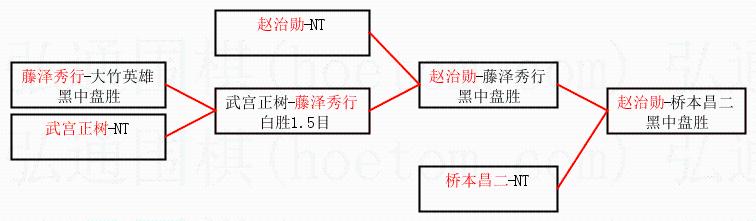 2.上半区半决赛赵治勋获胜, 比分:赵治勋 1:0 藤泽秀行。棋局: