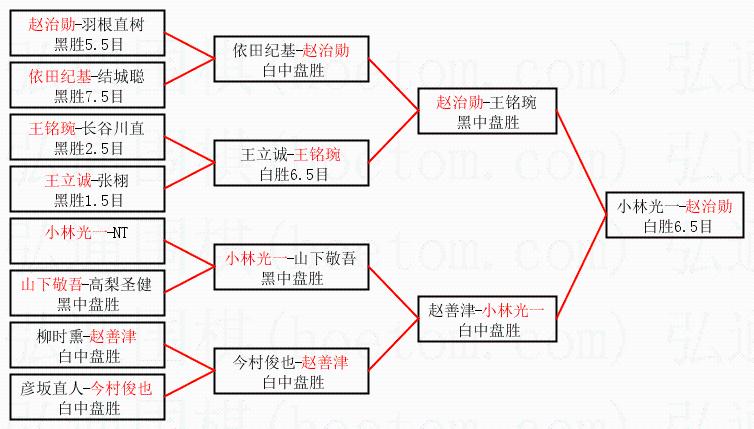 2.上半区半决赛赵治勋获胜, 比分:赵治勋 1:0 王铭琬。棋局: