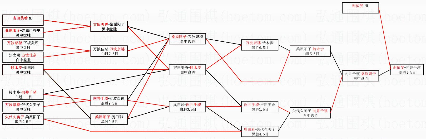 1.谢依旻获得冠军,向井千瑛获得亚军。决赛比分:谢依旻2:0向井千瑛。棋局: