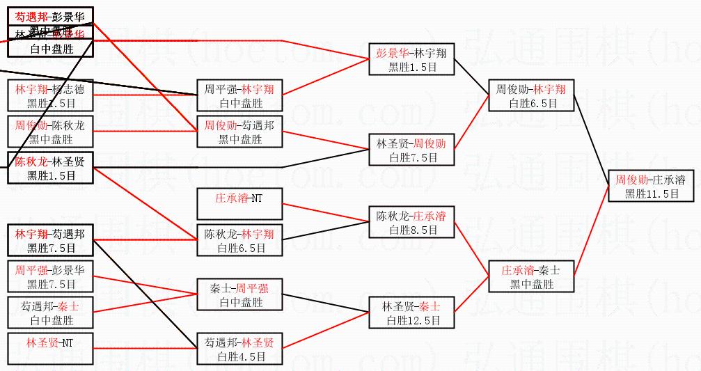 1.周俊勋获得冠军,庄承濬获得亚军。决赛比分:周俊勋2:0庄承濬。棋局:
